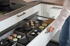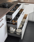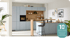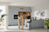 Die U-förmige Planung mit Hochschränken, Faltlift-Hängeschränken und Ansetztheke bietet viel Stauraum und Funktionalität. Hochwertige Elektrogeräte und eine Einbauspüle vervollständigen das stimmige Küchenkonzept.